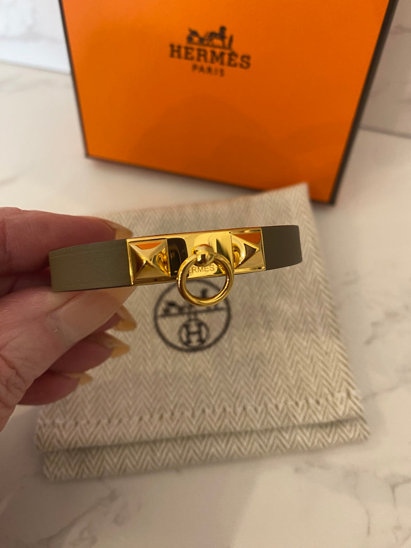 Pre Loved Hermes Mini Rivale Bracelet in Etoupe Leather - NEW