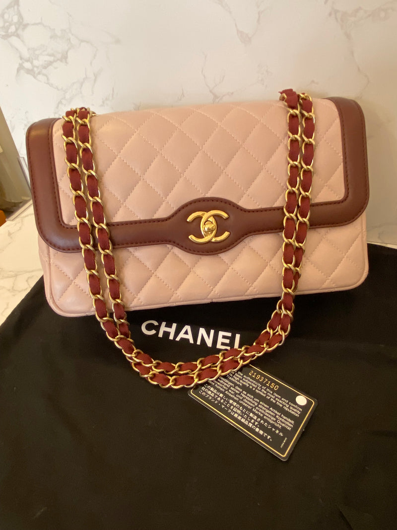 Pre Loved Chanel Single Flap Classic in Dusky Pink & Burgundy - Excellent