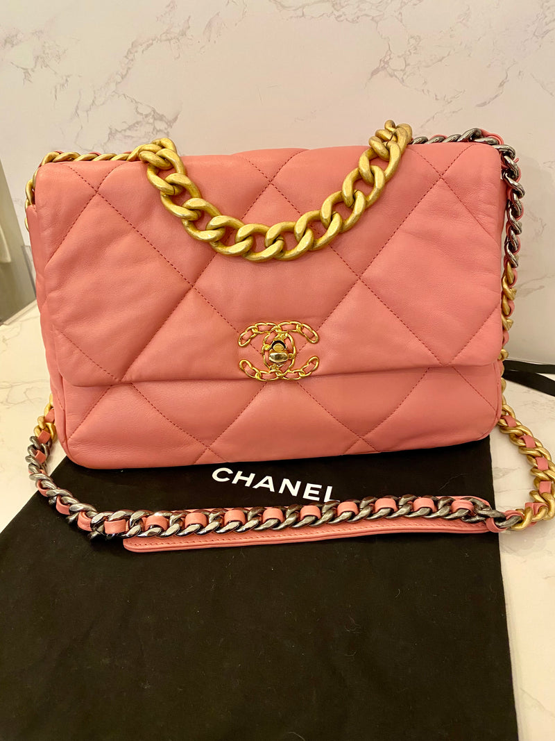 Pre Loved Chanel 19 in Pink Quilted Lambskin Leather - Excellent