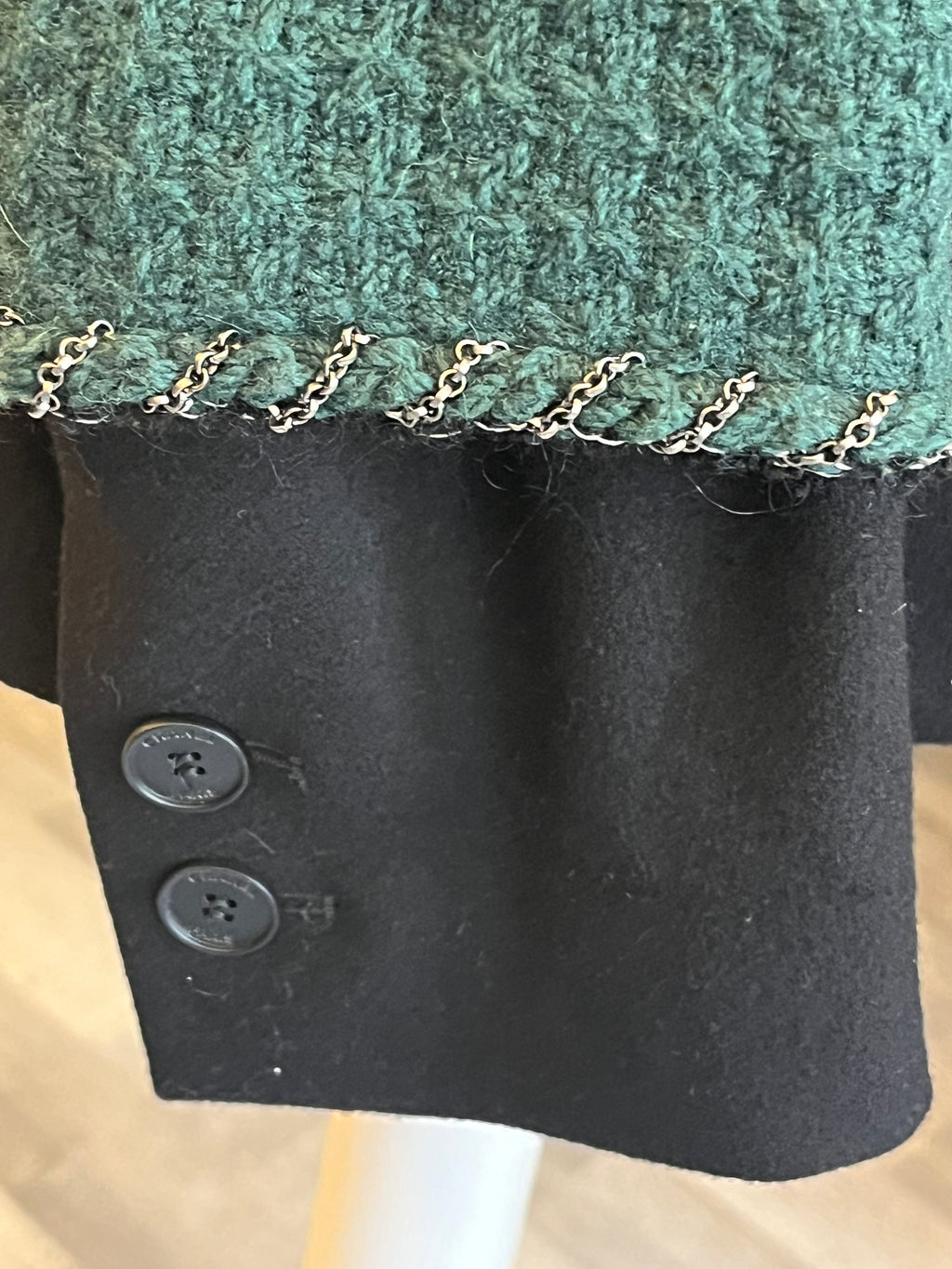 Pre Loved Chanel Green Tweed & Black Double Layer Jacket size FR42Fit (fits uk12)