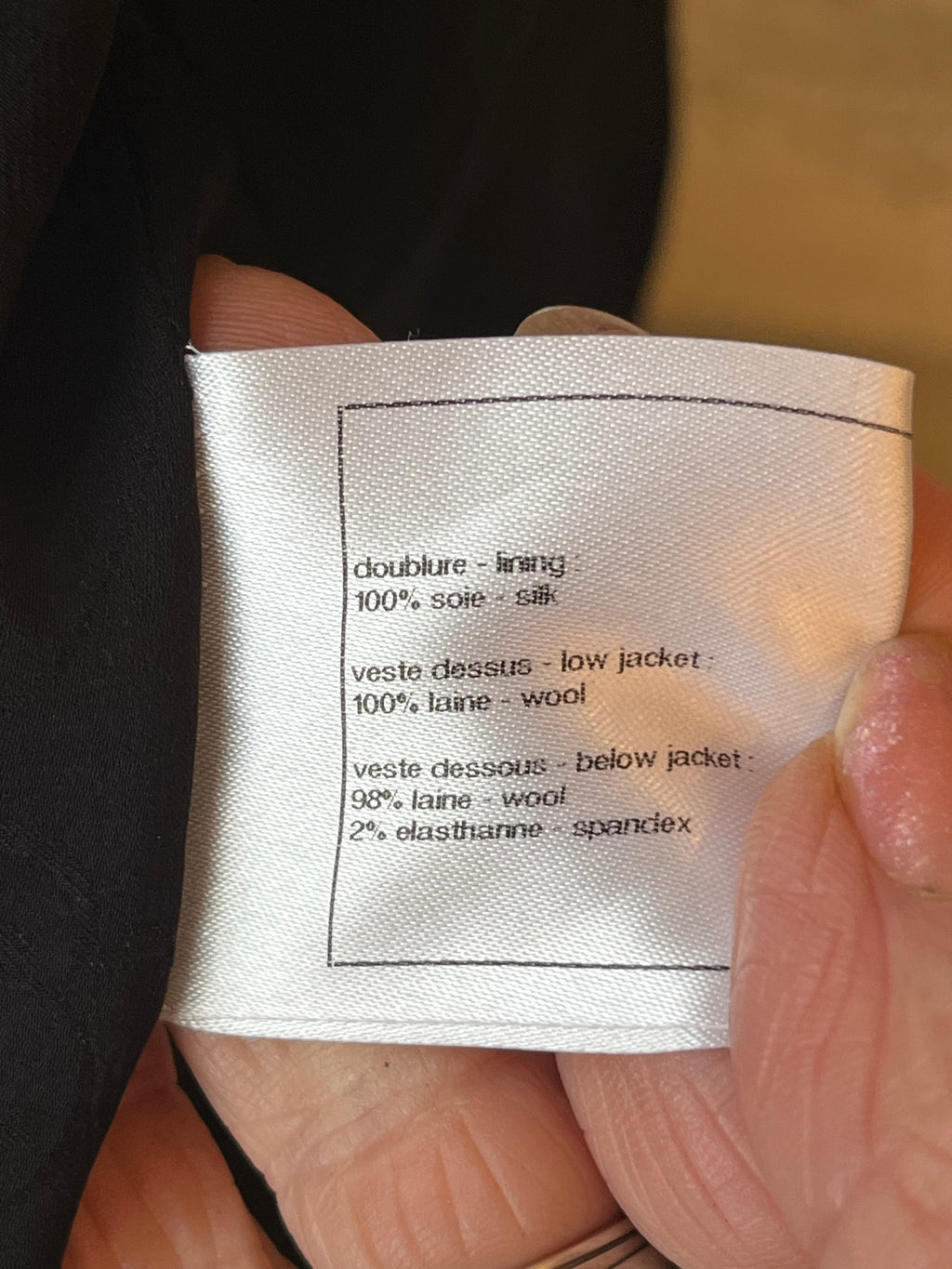 • Black wool longer jacket with green tweed wool shorter overlay jacket