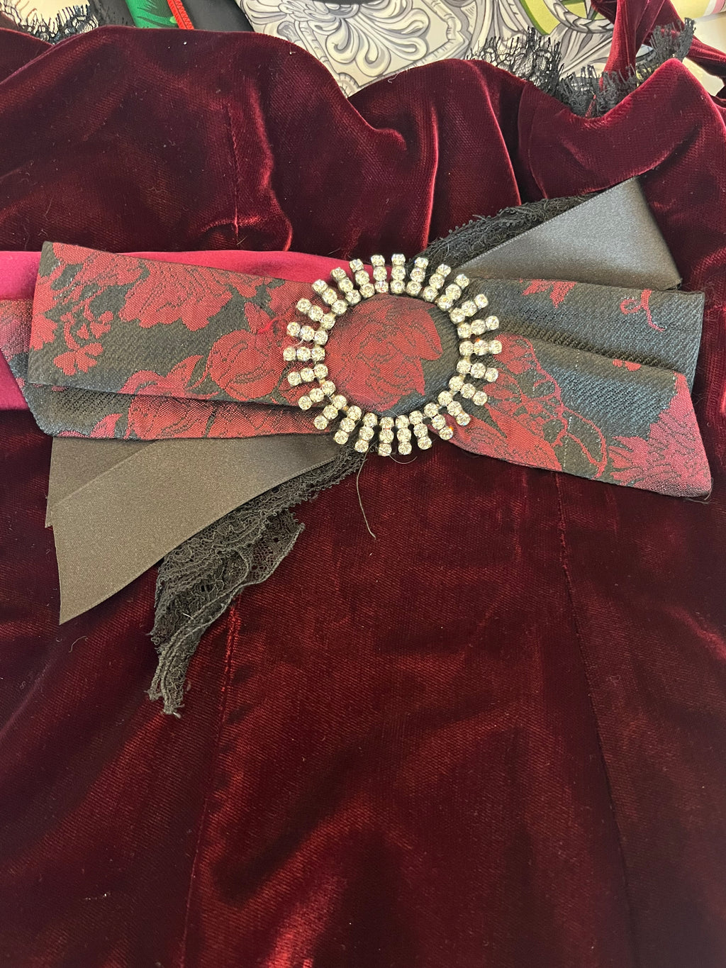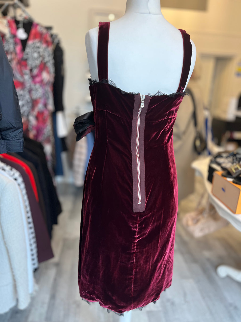 • Pre Loved Dolce & Gabbana Burgundy Velvet Dress Crystal Detail size 46 UK 14