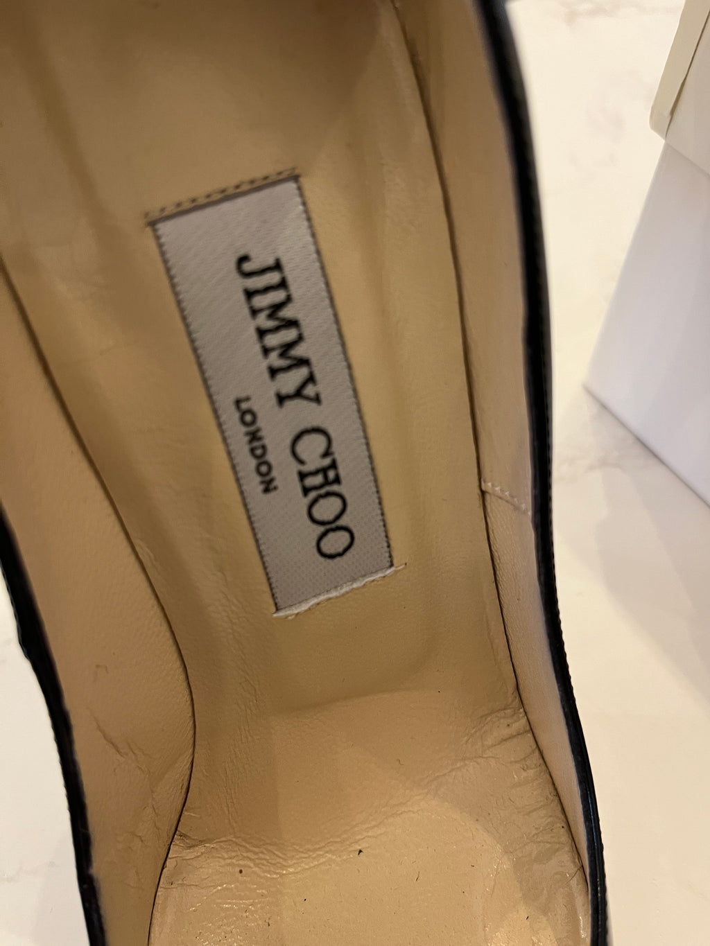• Pre Loved Jimmy Choo Anouk Black Patent Heels UK 4.5