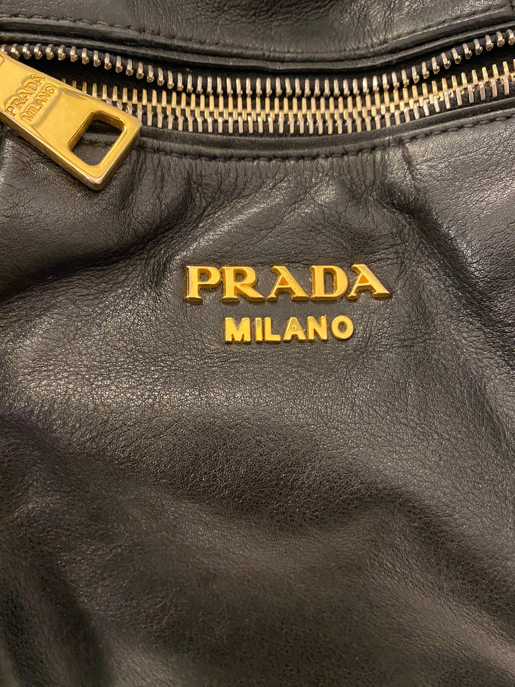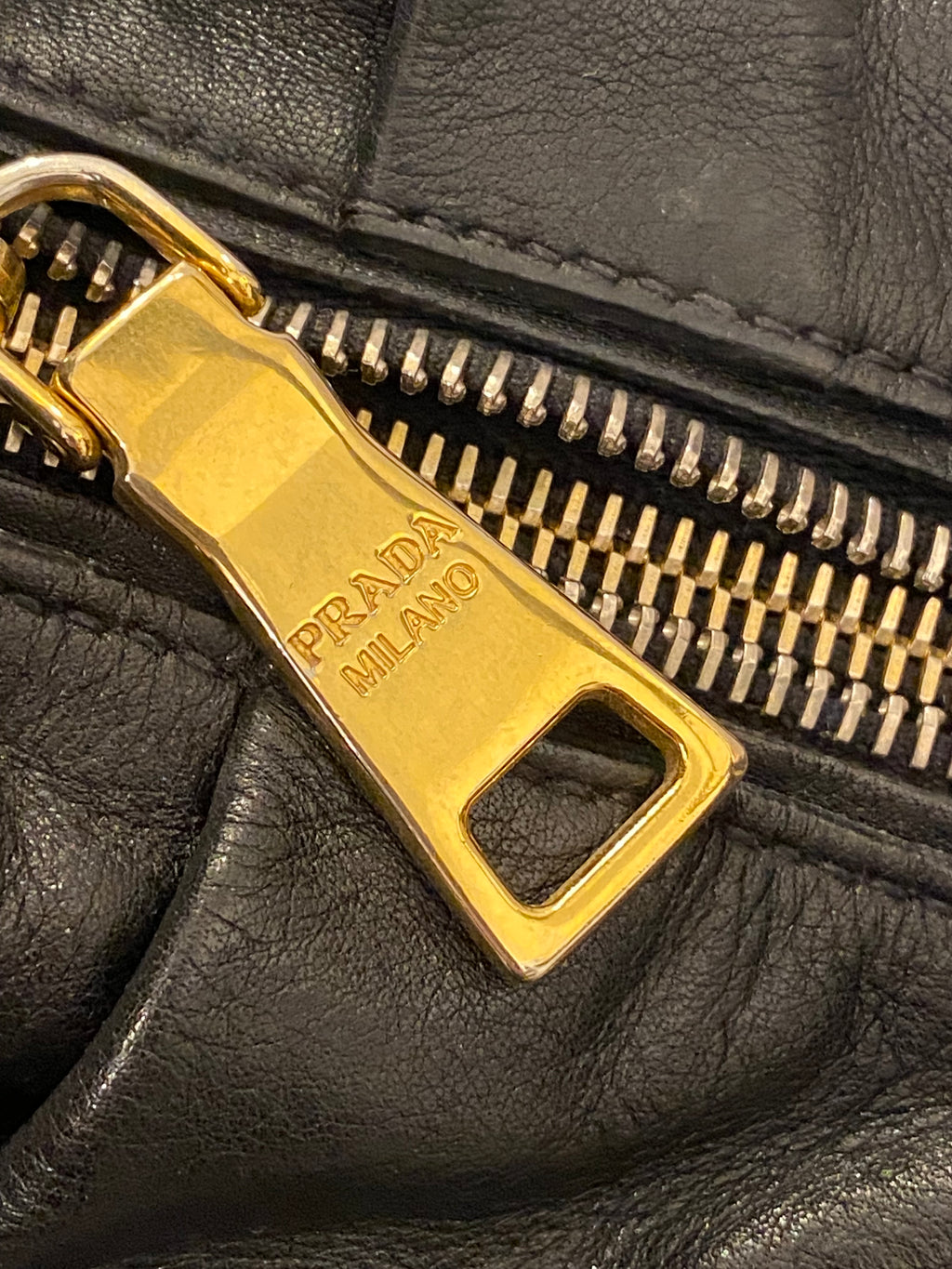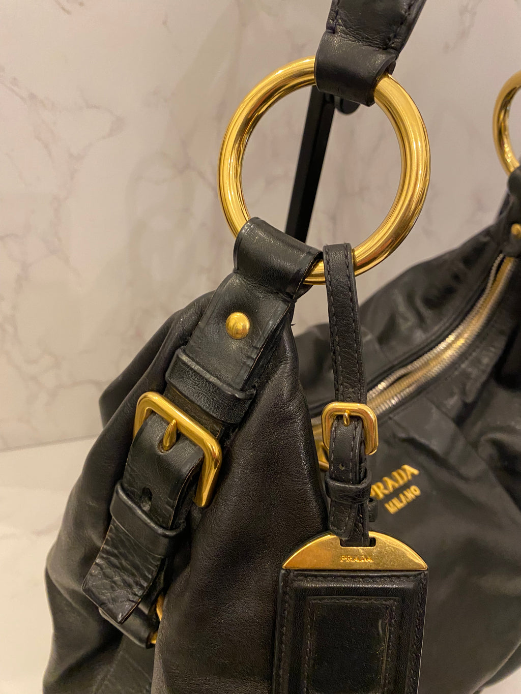 Pre Loved Vintage Prada Black Leather Slouchy Hobo Bag