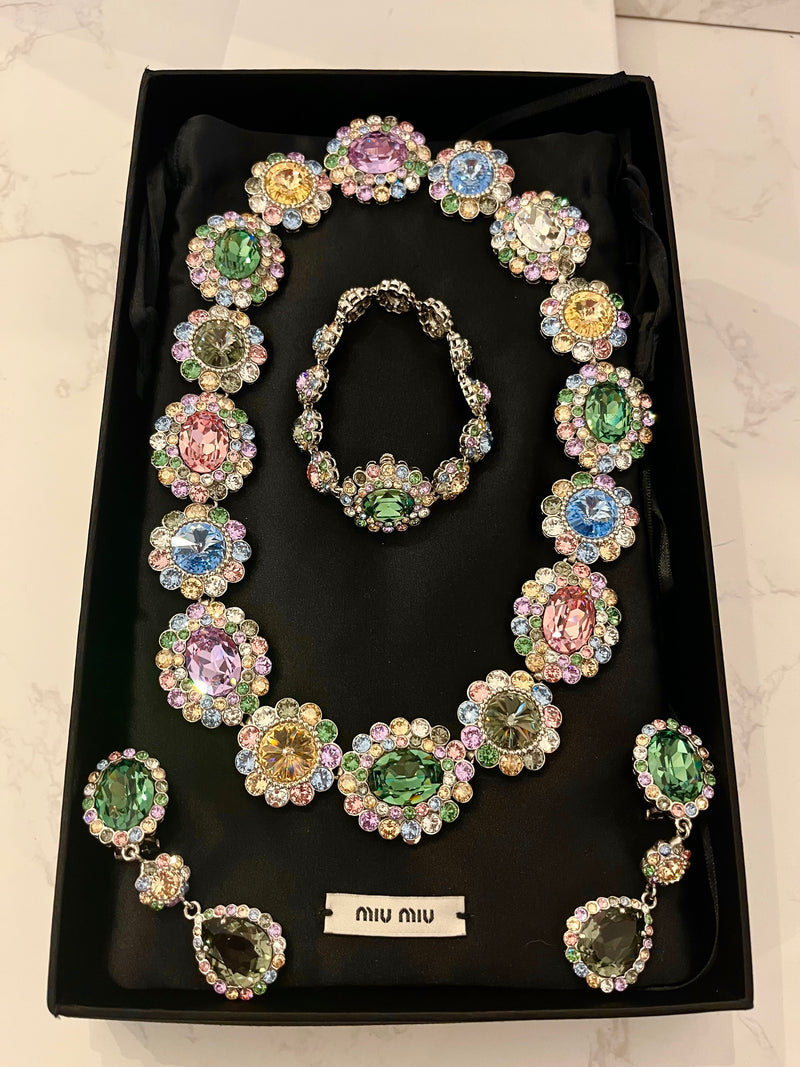 Pre Loved Miu Miu Crystal Necklace, Bracelet & Earrings