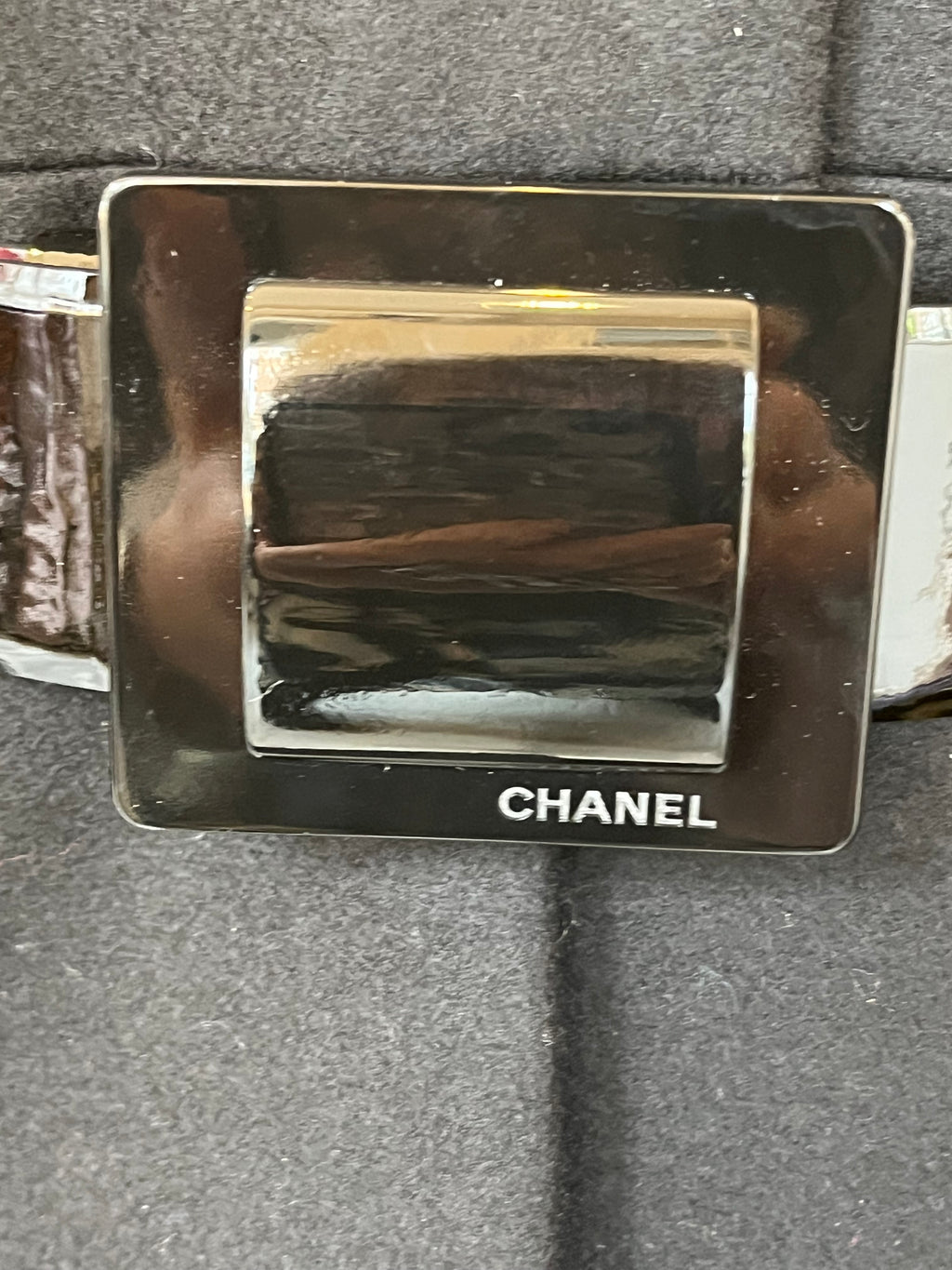 - Black patent leather belt