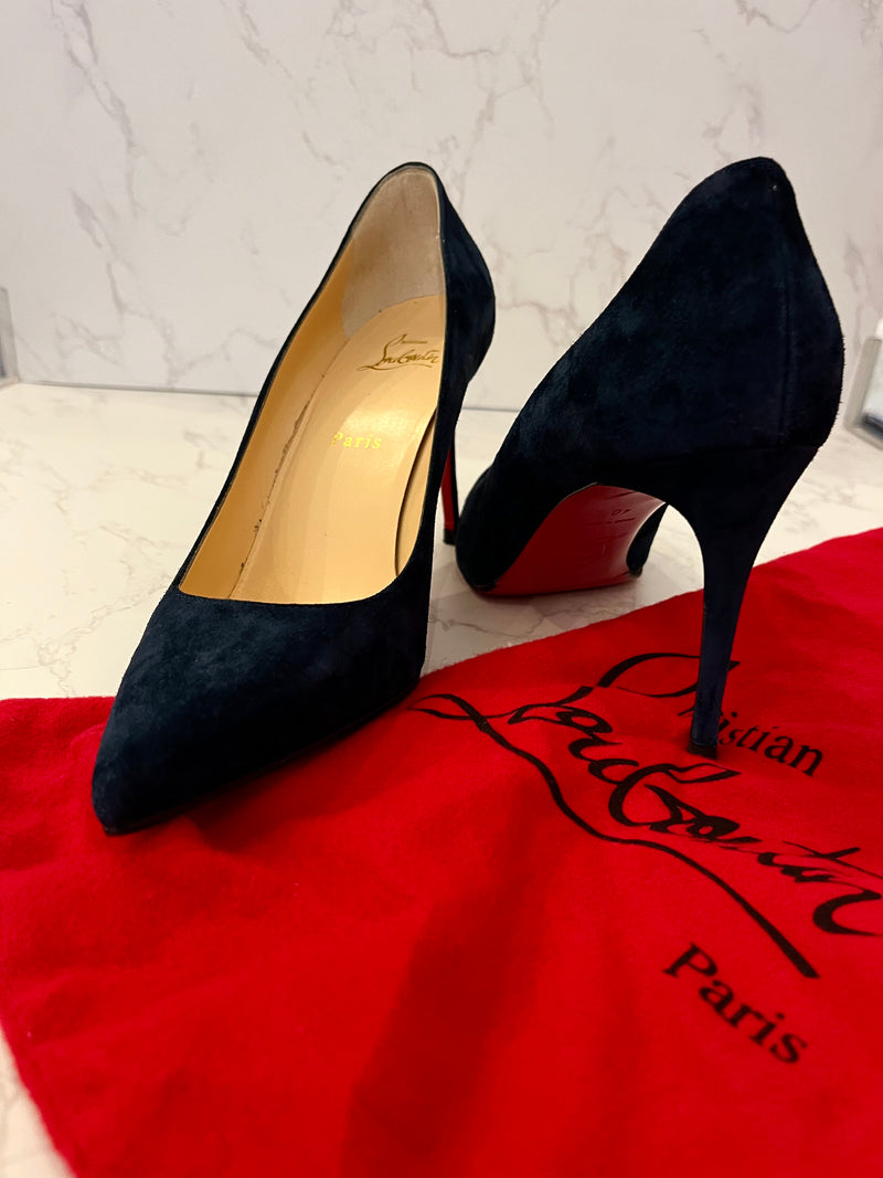 Pre Loved Christian Louboutin Navy Suede Heels Size UK 7 (new)