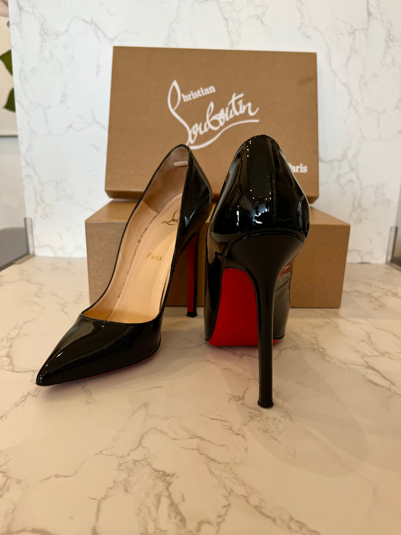 Pre Loved Christian Louboutin Pigalle 120 Black Patent Heels Size UK 3.5