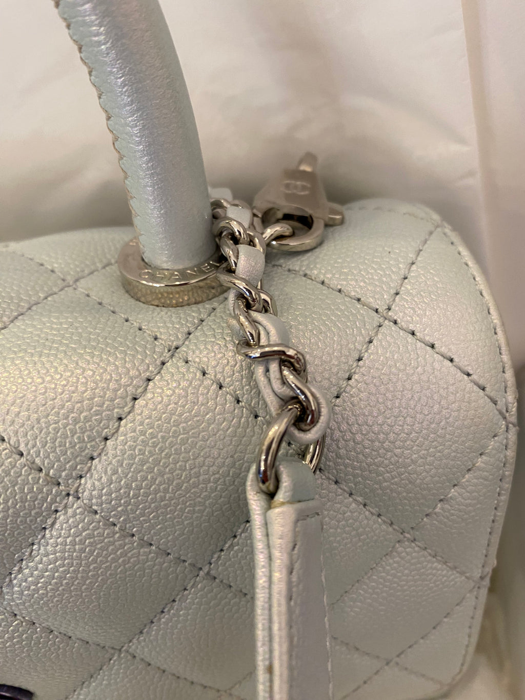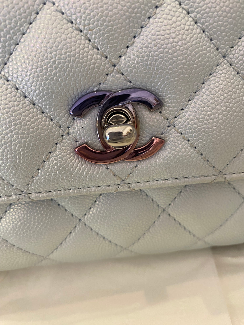 Pre Loved Chanel Coco Top Handle Bag in Iridescent Caviar Leather (Pristine)