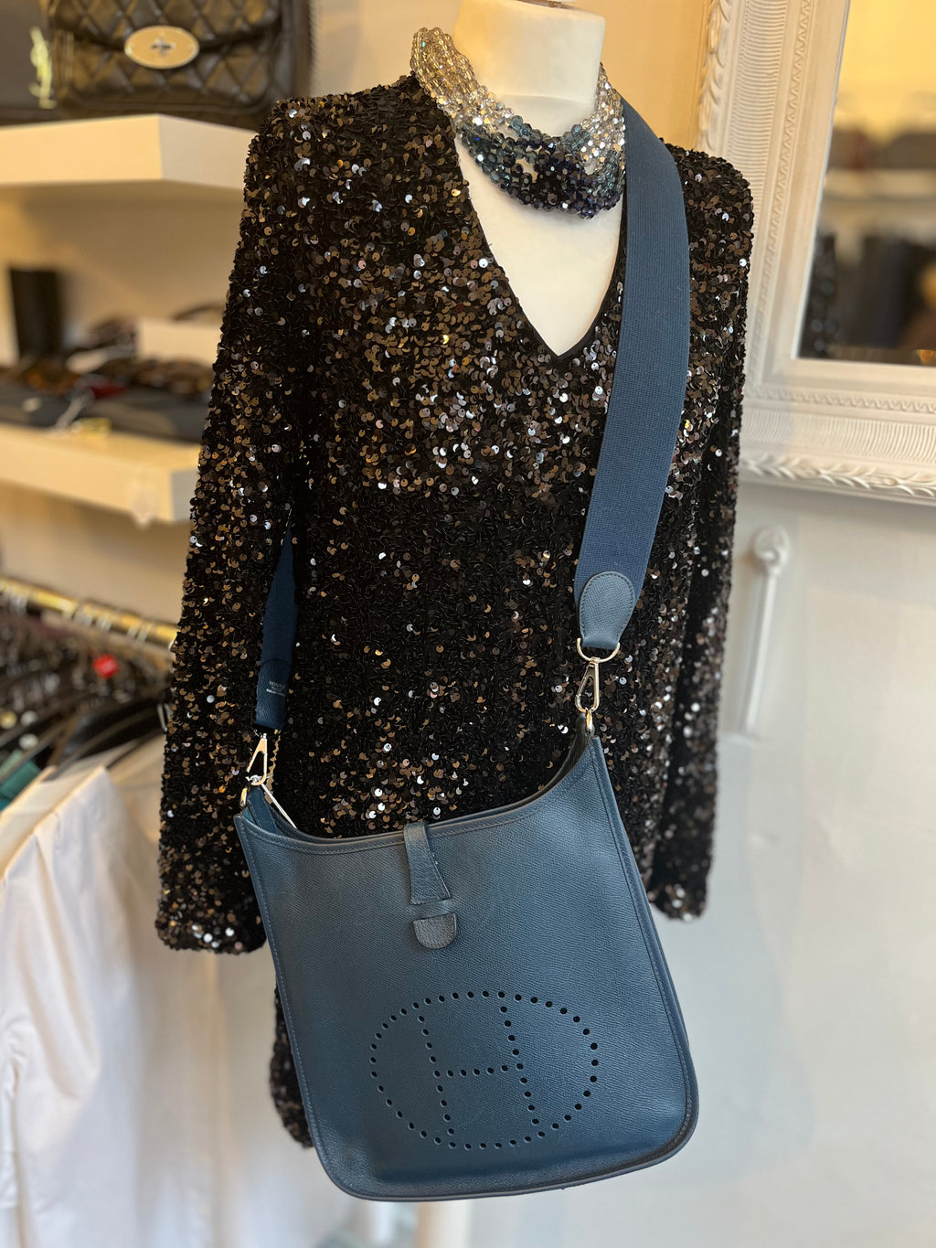 • Pre Loved Hermes Evelyn in Dark Teal with Palladium Hardware